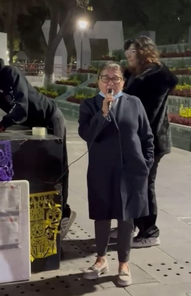- En el evento “Voces que no se apagan” en la explanada municipal, participaron Carmen Zamora de Colectiva Feminista Ehécatll, así como familiares de personas desaparecidas.